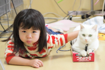とっても、人にも猫にもなつっこい性格で、あっという間にかんなとも仲良しです。しばらくは、病院内で飼うつもりですので、見かけたら撫でてやってください。