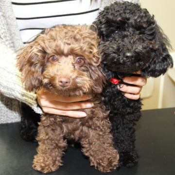 トイプードルのキキちゃんとドンちゃんの兄妹です。まだ7か月ぐらいで、狂犬病の予防注射と登録に見えたところを写真にとらしてもらいました。